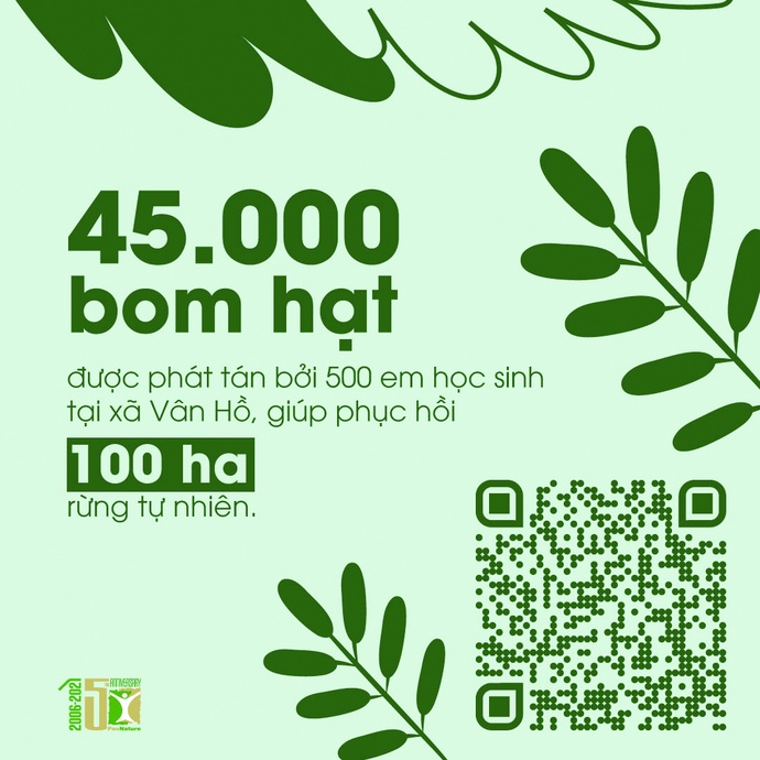 Một trong những hoạt động gắn chặt với cộng đồng trong 2 năm tới là khoảng 500 học sinh tại Vân Hồ sẽ tham gia tạo “bom hạt” để giúp phục hồi 100ha rừng tự nhiên.