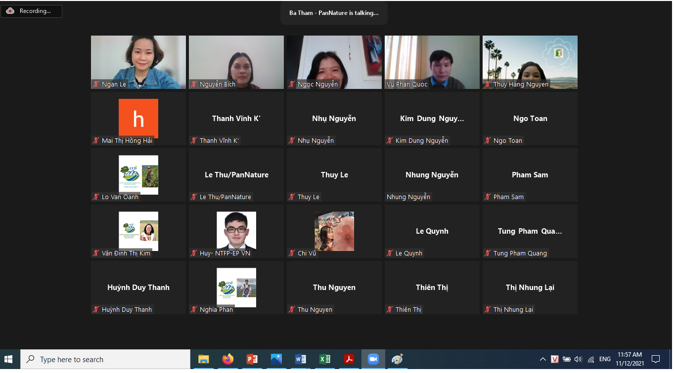 Hội thảo diễn ra vào sáng 12/11, dưới hình thức trực tuyến, với sự tham dự của hơn 60 các đại biểu đại diện cho các tổ chức xã hội trong nước và quốc tế, các nhà khoa học, chuyên gia và cá nhân trong lĩnh vực lâm nghiệp, bảo tồn thiên nhiên.