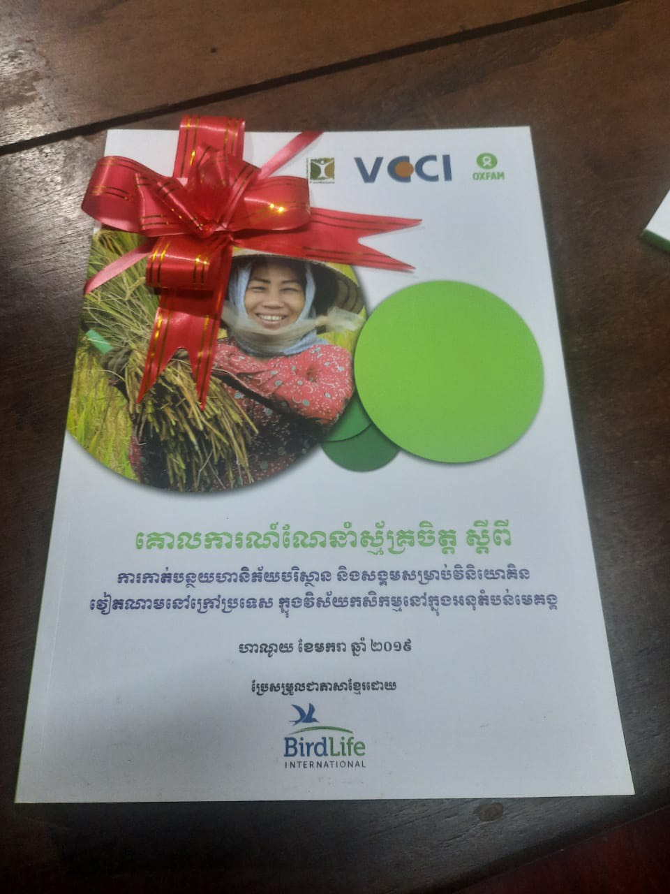 Ngày 24/11/2022, Birdlife Campuchia và Oxfam Campuchia đã phối hợp tổ chức hội thảo giới thiệu Sổ tay: “Hướng dẫn tự nguyện – Giảm thiểu rủi ro về môi trường và xã hội cho Doanh nghiệp Việt Nam đầu tư ra nước ngoài trong lĩnh vực Nông nghiệp tại Tiểu vùng sông Mê Kông” cho chính quyền địa phương tỉnh Ratanakiri, Campuchia và 11 doanh nghiệp Việt Nam và Campuchia tham gia đầu tư tại địa phương.