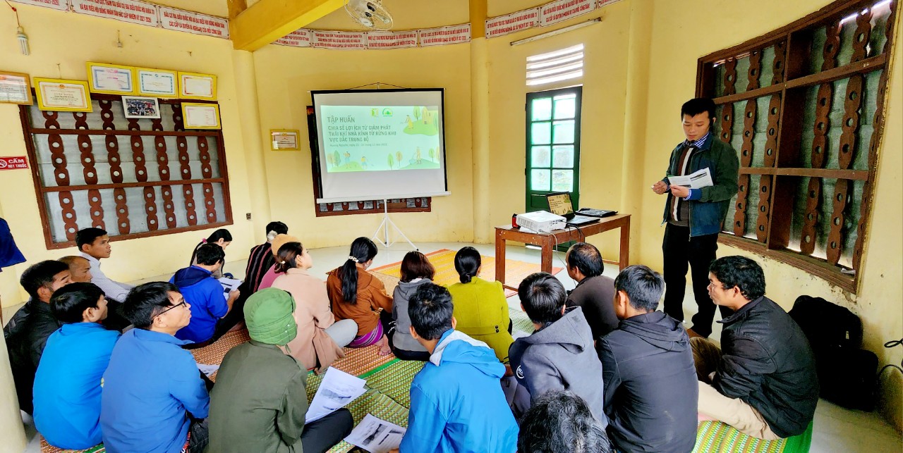 Trong hai ngày 21 và 22 tháng 12 năm 2022, Trung tâm Con người và Thiên nhiên (PanNature) và Quỹ Bảo vệ và Phát triển rừng tỉnh Thừa Thiên Huế phối hợp tổ chức Tập huấn Chia sẻ lợi ích trong giảm phát thải khí nhà kính cho cộng đồng các thôn Chi Đu Nghĩa, A Rý và Giồng, Mu Nú Ta Rá, xã Hương Nguyên, huyện A Lưới, tỉnh Thừa Thiên Huế. Tập huấn chia làm hai đợt cho các nhóm thôn: ngày 21/12 dành cho cộng đồng thôn Chi Đu Nghĩa và A Rý và ngày 22/12 dành cho cộng đồng các thôn Giồng và Mu Nú Ta Rá.