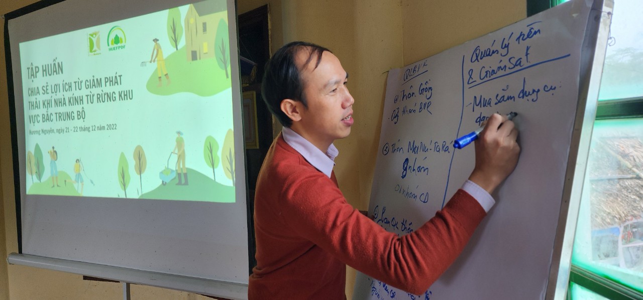 Trong hai ngày 21 và 22 tháng 12 năm 2022, Trung tâm Con người và Thiên nhiên (PanNature) và Quỹ Bảo vệ và Phát triển rừng tỉnh Thừa Thiên Huế phối hợp tổ chức Tập huấn Chia sẻ lợi ích trong giảm phát thải khí nhà kính cho cộng đồng các thôn Chi Đu Nghĩa, A Rý và Giồng, Mu Nú Ta Rá, xã Hương Nguyên, huyện A Lưới, tỉnh Thừa Thiên Huế. Tập huấn chia làm hai đợt cho các nhóm thôn: ngày 21/12 dành cho cộng đồng thôn Chi Đu Nghĩa và A Rý và ngày 22/12 dành cho cộng đồng các thôn Giồng và Mu Nú Ta Rá.