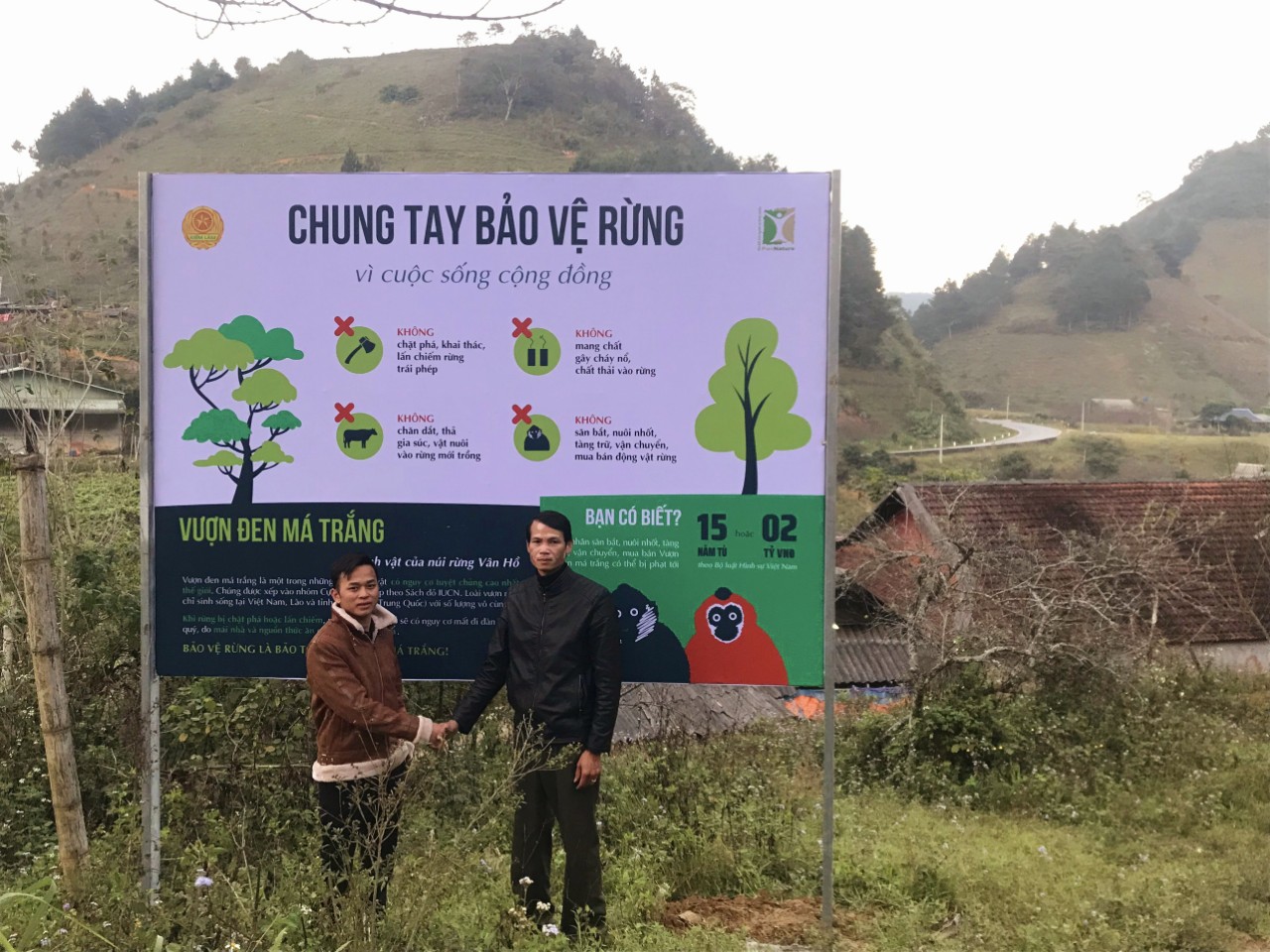 Ngày 15/12/2022, cán bộ Trung tâm Con người và Thiên nhiên (PanNature) đã phối hợp với Đoàn thanh niên và Hạt kiểm lâm Vân Hồ dựng pano tại khu vực rừng Vân Hồ nhằm nâng cao nhận thức cho khách dư lịch và người dân địa phương về tầm quan trọng của việc bảo vệ rừng và loài Vượn đen má trắng – Linh vật của núi rừng nơi đây.