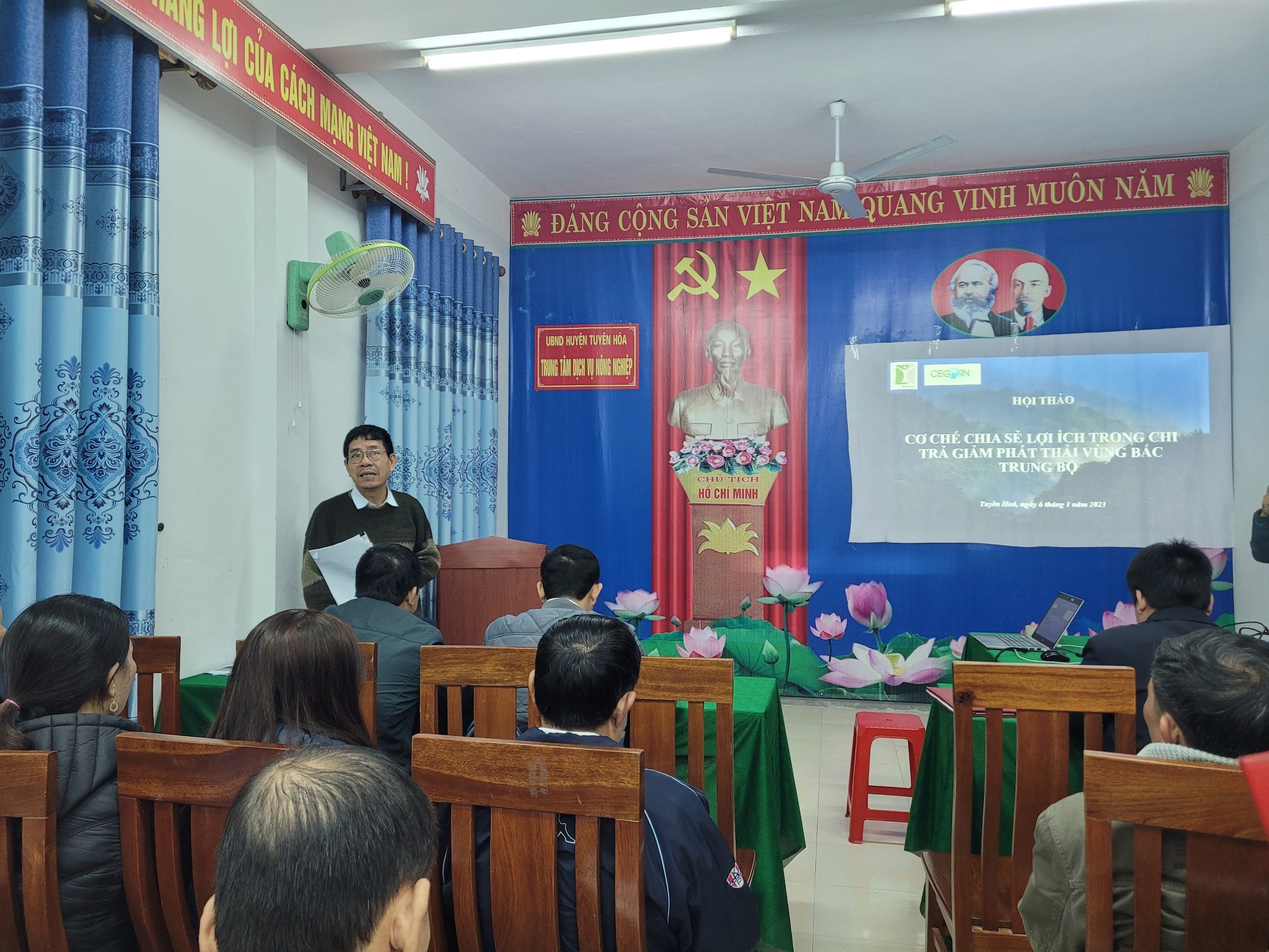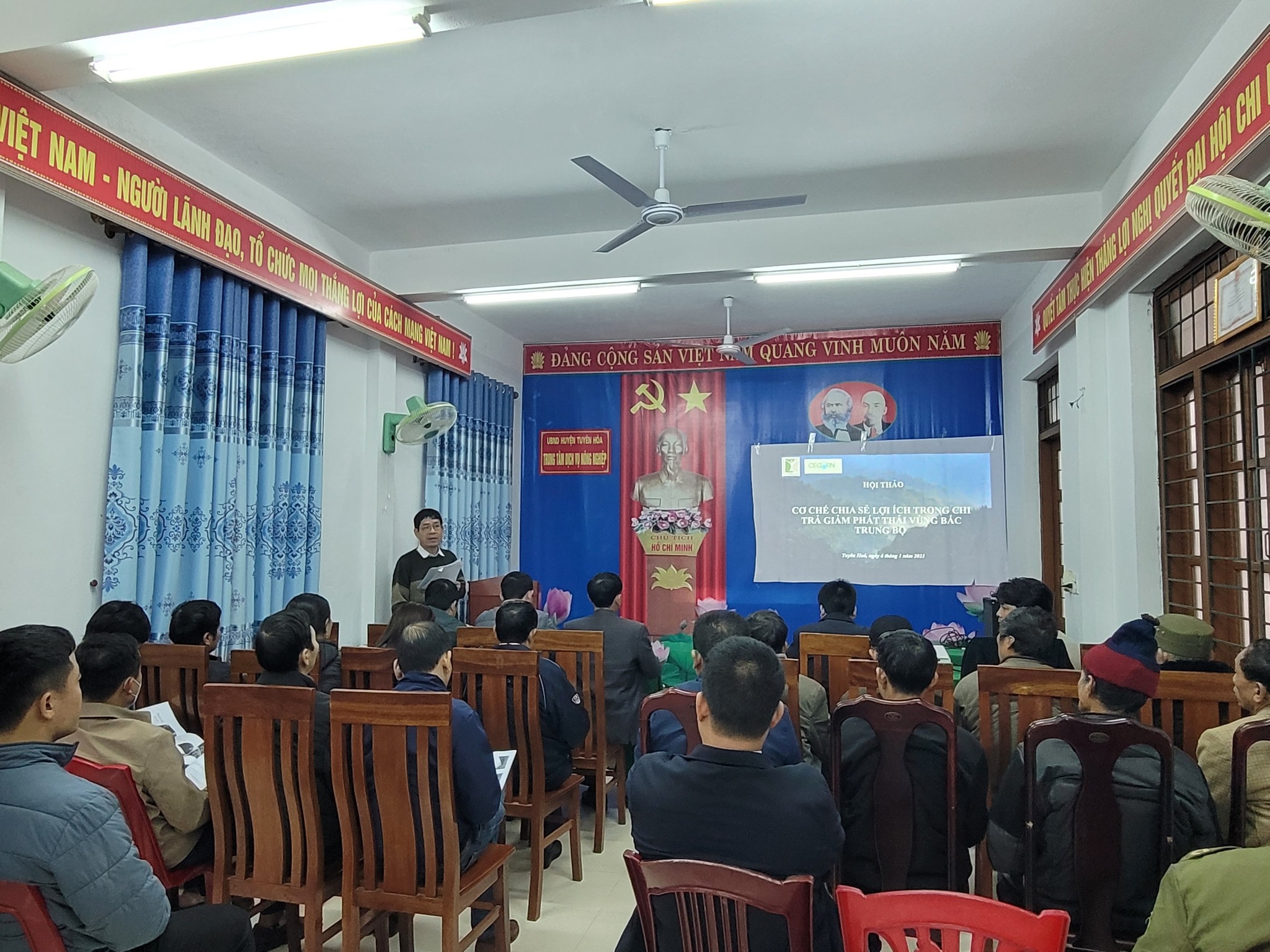 Ngày 6/1/2023, Trung tâm Con người và Thiên nhiên (PanNature) phối hợp cùng Trung tâm Nghiên cứu Quản trị Tài nguyên Vùng Cao (CEGORN) tổ chức Hội thảo Cơ chế chia sẻ lợi ích từ giảm phát thải khí nhà kính tại huyện Tuyên Hoá, tỉnh Quảng Bình.