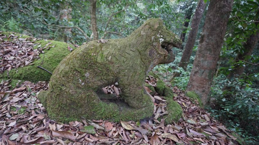Hiện trong rừng có một ngôi miếu nhỏ thờ thần rừng được xây dưới gốc cây cổ thụ, trên một tảng đá. Cách đó khoảng 50m, ở giữa rừng có tượng một con Long khuyển, là vật tổ của người Dao, đặt trên một tảng đá lớn.