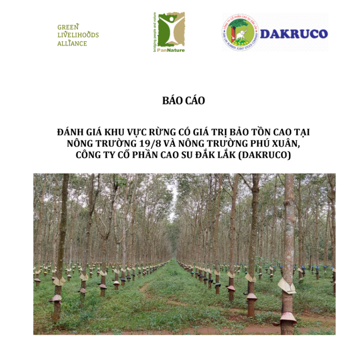 Trong khuôn khổ dự án của Liên minh Sinh kế Xanh (GLA2) và hợp tác giữa PanNature với Công ty Cổ phần Cao su Đắk Lắk (DAKRUCO), Nhóm chuyên gia PanNature đã hỗ trợ Công ty thực hiện đánh giá sự hiện hữu (nếu có) của các giá trị bảo tồn cao (HCV) cho diện tích 1.121,76 ha cao su dự kiến xin cấp chứng chỉ chứng chỉ FSC thuộc Nông trường Phú Xuân (Xã Ea Drơng, Huyện Cư M’gar) và Nông trường 19/8 (Xã Dray Bhăng, Huyện Cư Kuin).