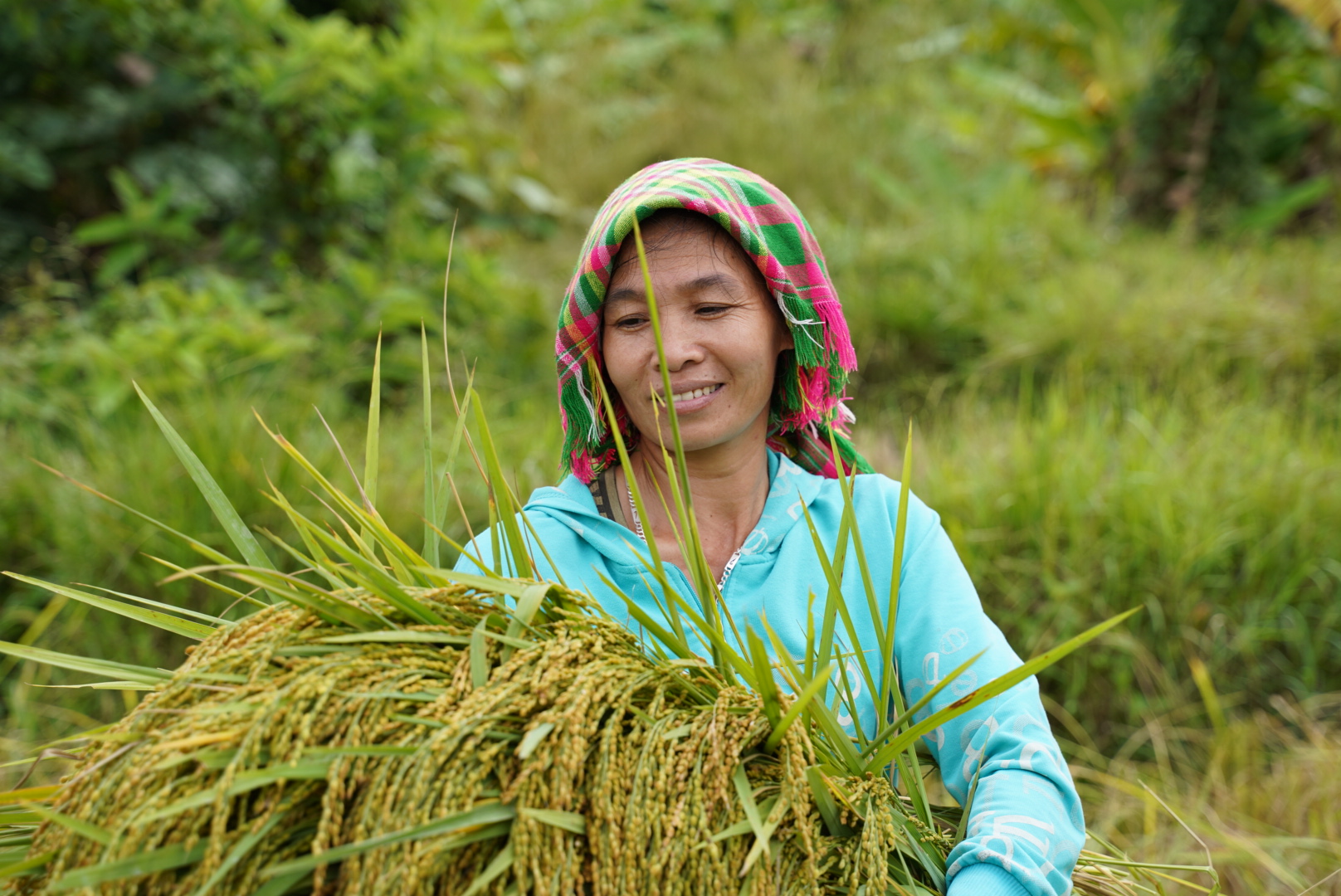 Ông Vàng Văn Chẻo, Trưởng Nhóm Nông dân thích ứng biến đổi khí hậu bản Hợp 1, xã Bản Lang, huyện Phong Thổ, tỉnh Lai Châu chia sẻ: “Mấy năm trước, một sào mất tới 5 cân giống mà thu hoạch về không được nhiều, chưa kể tốn công cấy. Giờ cấy theo phương pháp mới chỉ mất 3 cân giống là được một sào. Thế là vừa ít mất giống, lại ít mất công, chủ yếu là cấy được nhanh hơn. Như ruộng nhà tôi trước đây, 29 – 30 người cấy một ngày không xong. Ba năm nay cấy theo phương pháp mới, tôi chỉ cần 10 người cấy trong một buổi. Mình cấy thưa thì làm cỏ cũng dễ, cây lúa cũng đẹp, bông to, hạt to và năng suất hơn. Nói chung là từ khi tham gia mô hình, bà con được nhiều cái lợi. Ruộng lúa phát triển, bà con cũng đủ ăn, hàng năm không phải đói nữa, và lại lợi cho cả bản vì không ô nhiễm môi trường”.
