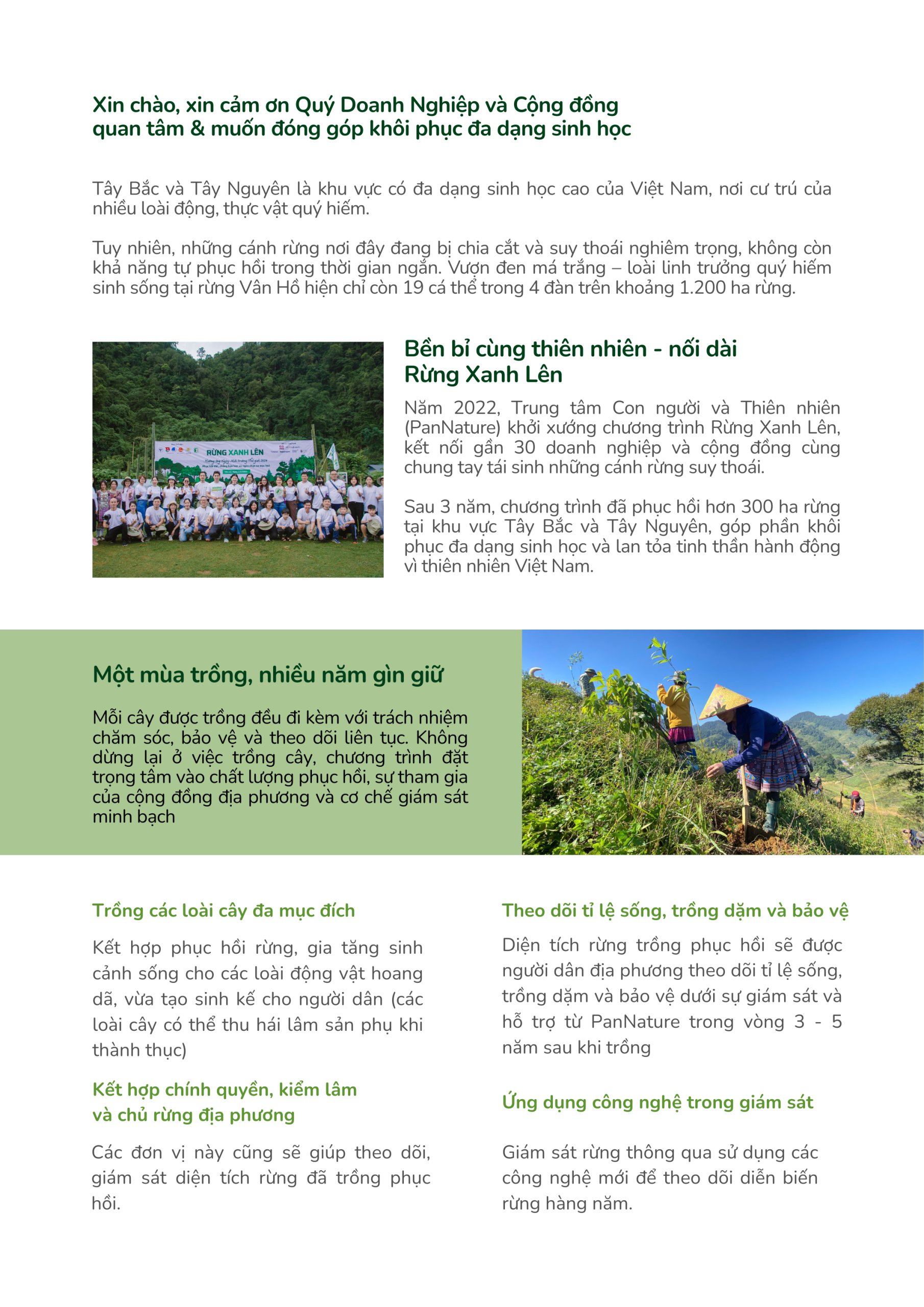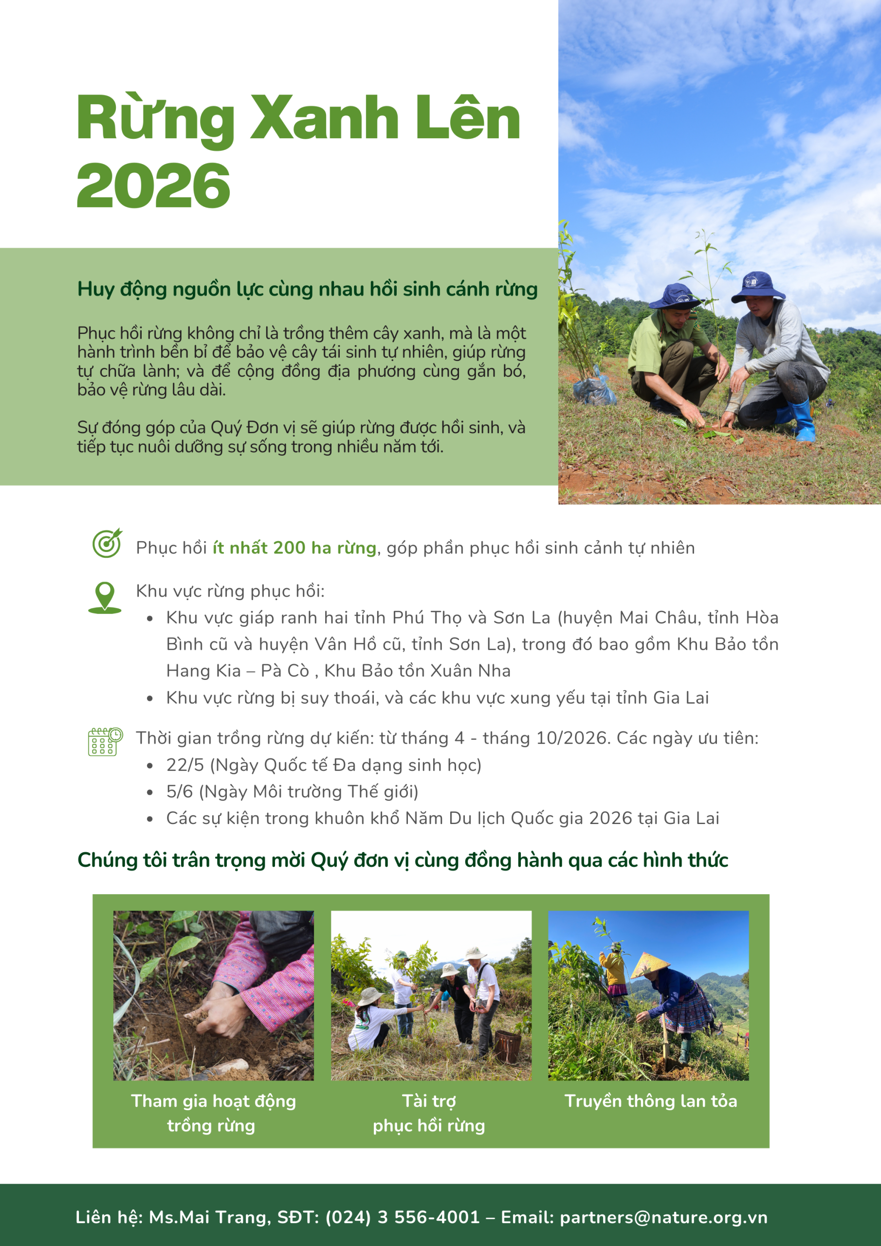 PanNature trân trọng mời các doanh nghiệp, tổ chức và cộng đồng cùng đồng hành với Chương trình Rừng Xanh Lên 2026 thông qua: