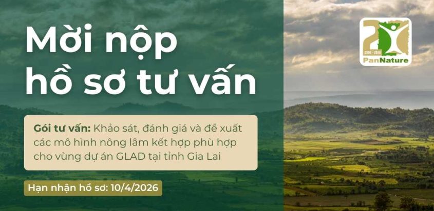 Trung tâm Con người và Thiên nhiên (PanNature) trân trọng kính mời các cá nhân tư vấn hoặc nhóm tư vấn có năng lực và kinh nghiệm phù hợp nộp hồ sơ đề xuất để thực hiện gói tư vấn: “Khảo sát, đánh giá và đề xuất các mô hình nông lâm kết hợp phù hợp cho vùng dự án GLAD tại tỉnh Gia Lai”.