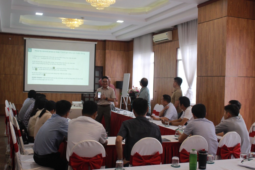 Khóa tập huấn có sự tham gia của 20 học viên là cộng tác viên kỹ thuật cấp xã và cán bộ từ các hạt kiểm lâm của nhiều địa phương trong tỉnh. Dưới sự hướng dẫn của chuyên gia Livio Pierro, các học viên được trang bị kiến thức và kỹ năng thực hành về lập bản đồ và xác định khu vực trồng cây, đăng ký và quản lý dữ liệu các khu vực đã trồng, theo dõi tỷ lệ sống – chết của cây giống, cũng như sử dụng công cụ số ArcGIS Survey123 trong thu thập dữ liệu hiện trường.