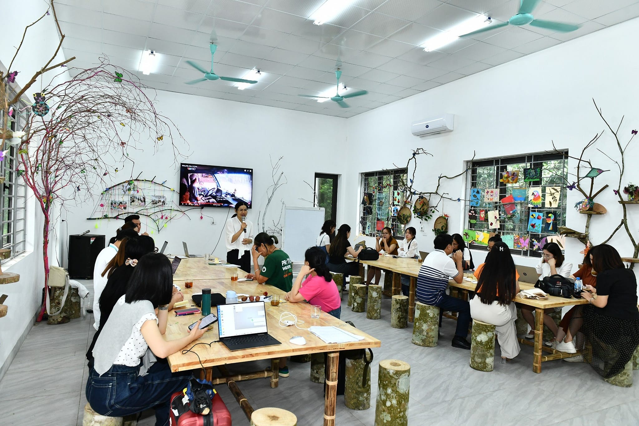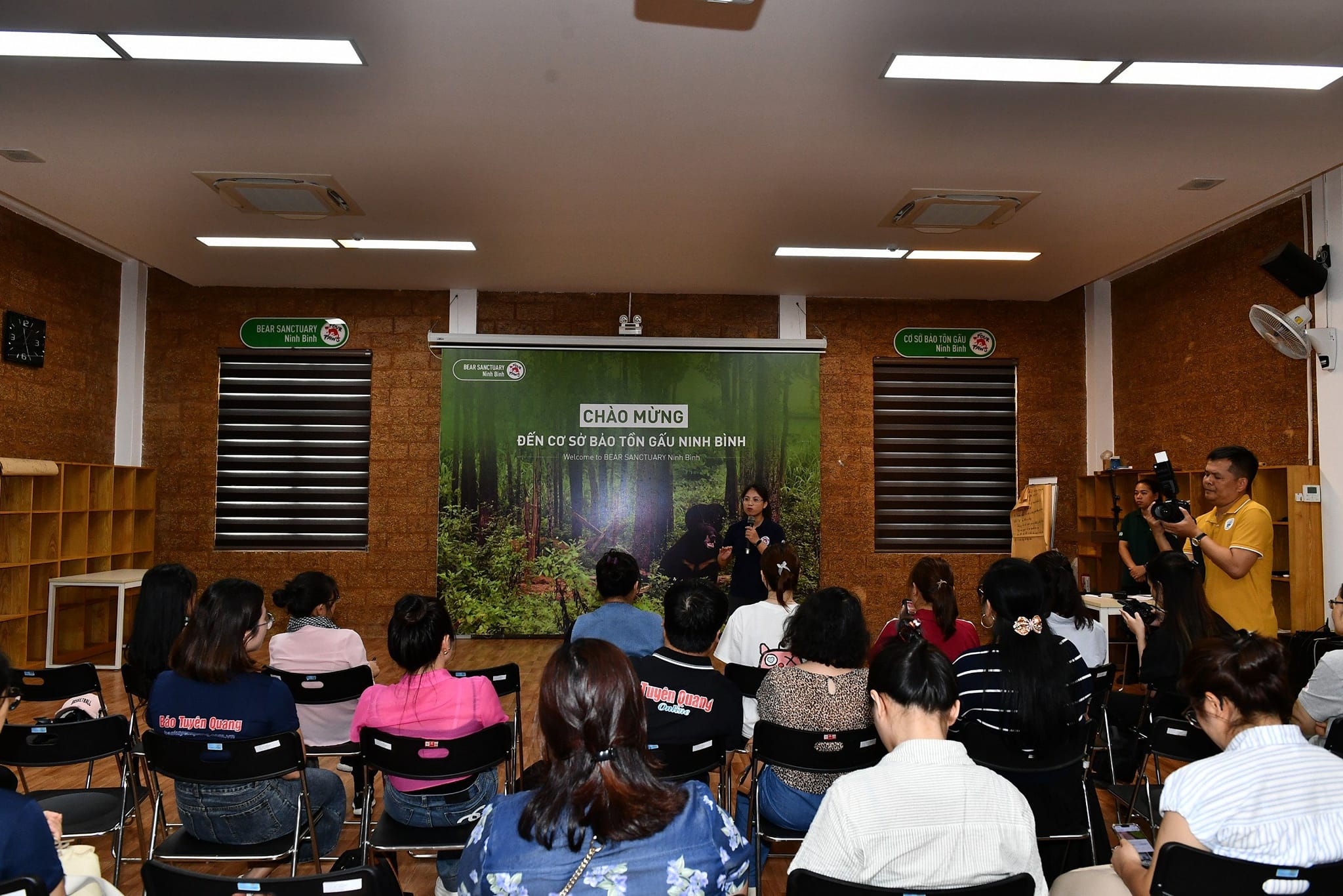 Tại Vườn quốc gia Cúc Phương, Đoàn tham dự buổi chia sẻ về kỹ năng, nghiệp vụ báo chí; cách khai thác các câu chuyện xã hội nói chung, câu chuyện bảo tồn nói riêng dưới lăng kính báo chí; cách kể các câu chuyện ấy sao cho hấp dẫn, chân thực, khách quan và cách theo đuổi các đề tài khó, cần sự dũng cảm và ứng biến linh hoạt của nhà báo.