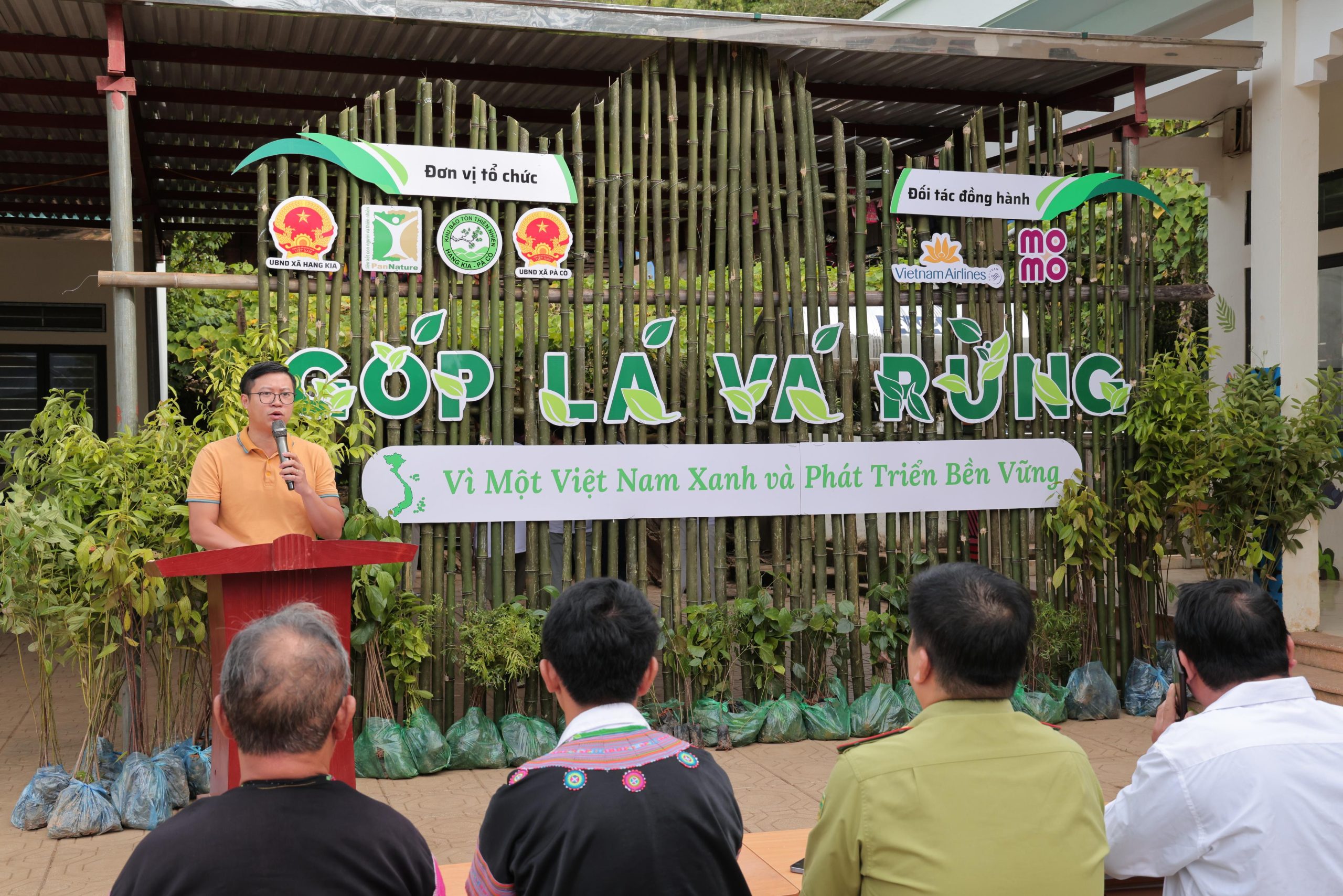 Mai Châu, Hòa Bình, ngày 20/8/2024 – Ngày 20/8/2024, tại xã Hang Kia (huyện Mai Châu, tỉnh Hòa Bình), các đơn vị gồm Vietnam Airlines, MoMo, Trung tâm Con người và Thiên nhiên (PanNature) và Khu Bảo tồn Thiên nhiên (BTTN) Hang Kia – Pà Cò cùng chính quyền địa phương phối hợp tổ chức sự kiện Góp Lá Vá Rừng – Vì Một Việt Nam Xanh và Phát triển Bền Vững để trồng phục hồi rừng tại Khu BTTN Hang Kia – Pà Cò.