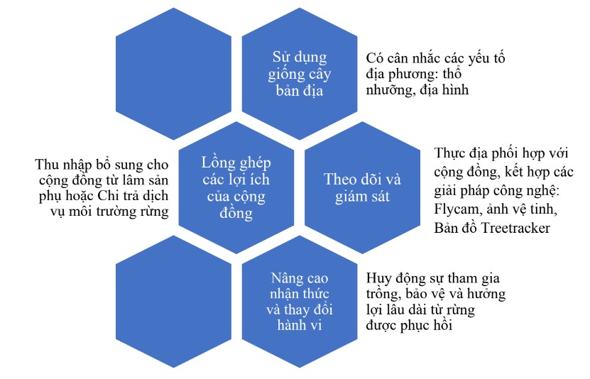 Người dân địa phương sẽ được tham gia vào quá trình trồng, chăm sóc, theo dõi tỉ lệ sống của cây và thực hiện trồng dặm rừng trong 3 năm đầu sau khi trồng để đảm bảo diện tích rừng đã trồng được phục hồi hoàn toàn. Sự tham gia của người dân vừa giúp đảm bảo sự thành công của chương trình phục hồi rừng vừa thể hiện sự cam kết của cộng đồng địa phương trong việc duy trì và phát triển các nguồn tài nguyên rừng quý báu.