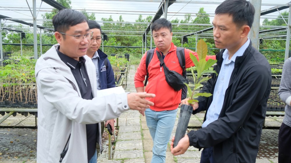 One of the most notable highlights of the visit was the native tree nursery in Cam Lo, which applies raised-bed technique – the first model in Vietnam to use elevated plastic containers for native species. This method helps improve root development, reduce root deformation, and enhance seedling resilience under harsh site conditions, thereby increasing survival rates after planting. The PanNature team also gained useful insights into nursery management practices, including the use of organic substrates, shade adjustment, automated irrigation, and propagation techniques tailored to different native species. These lessons are particularly relevant for PanNature’s restoration work in ecologically challenging areas such as Gia Lai and Van Ho.